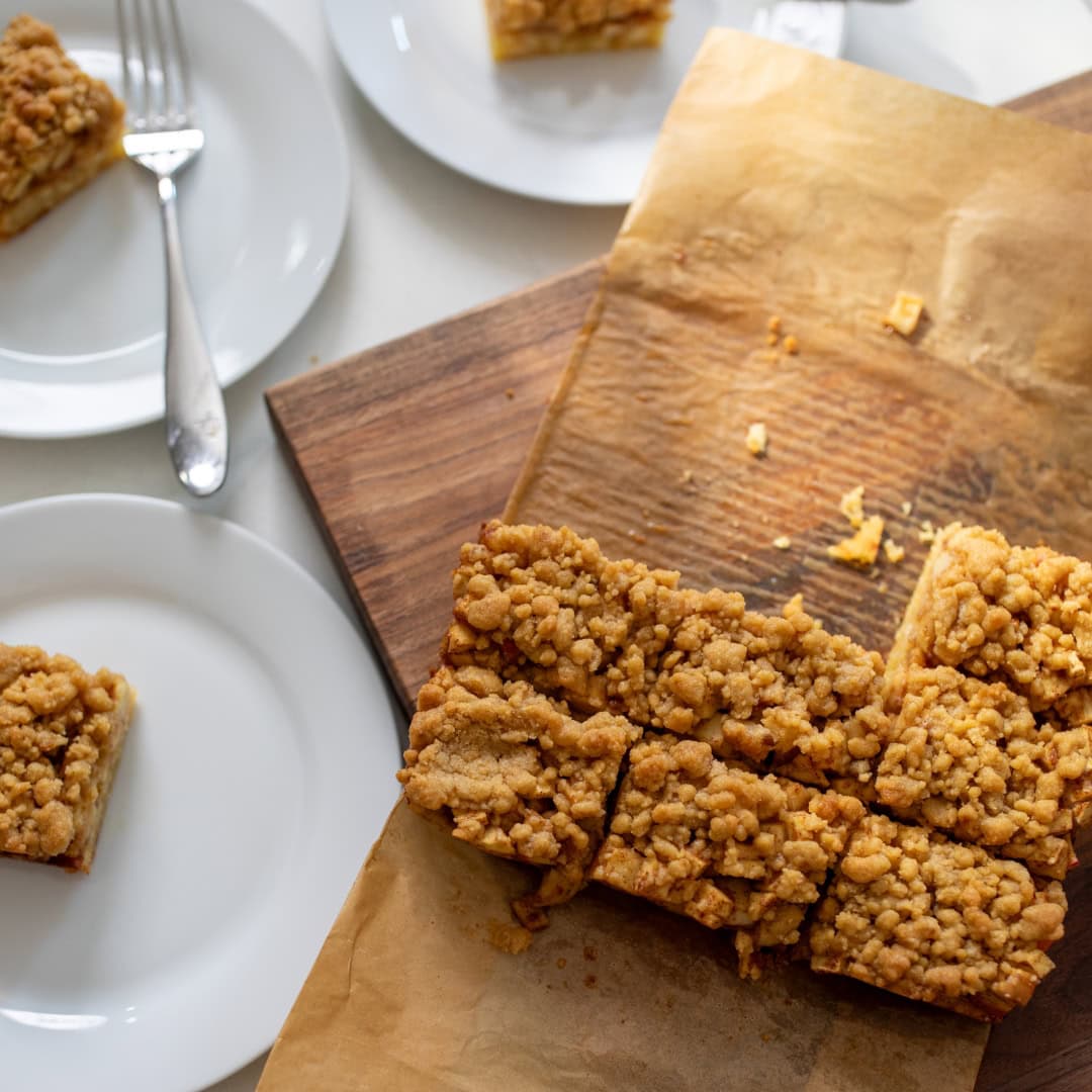 Sweet and juicy filling with all the flavors of apple pie sits atop salty, savory cheddar shortbread in these deliciously unique bars. They're simple to make and so irresistible, you'll leave Friendsgiving with an empty pan.