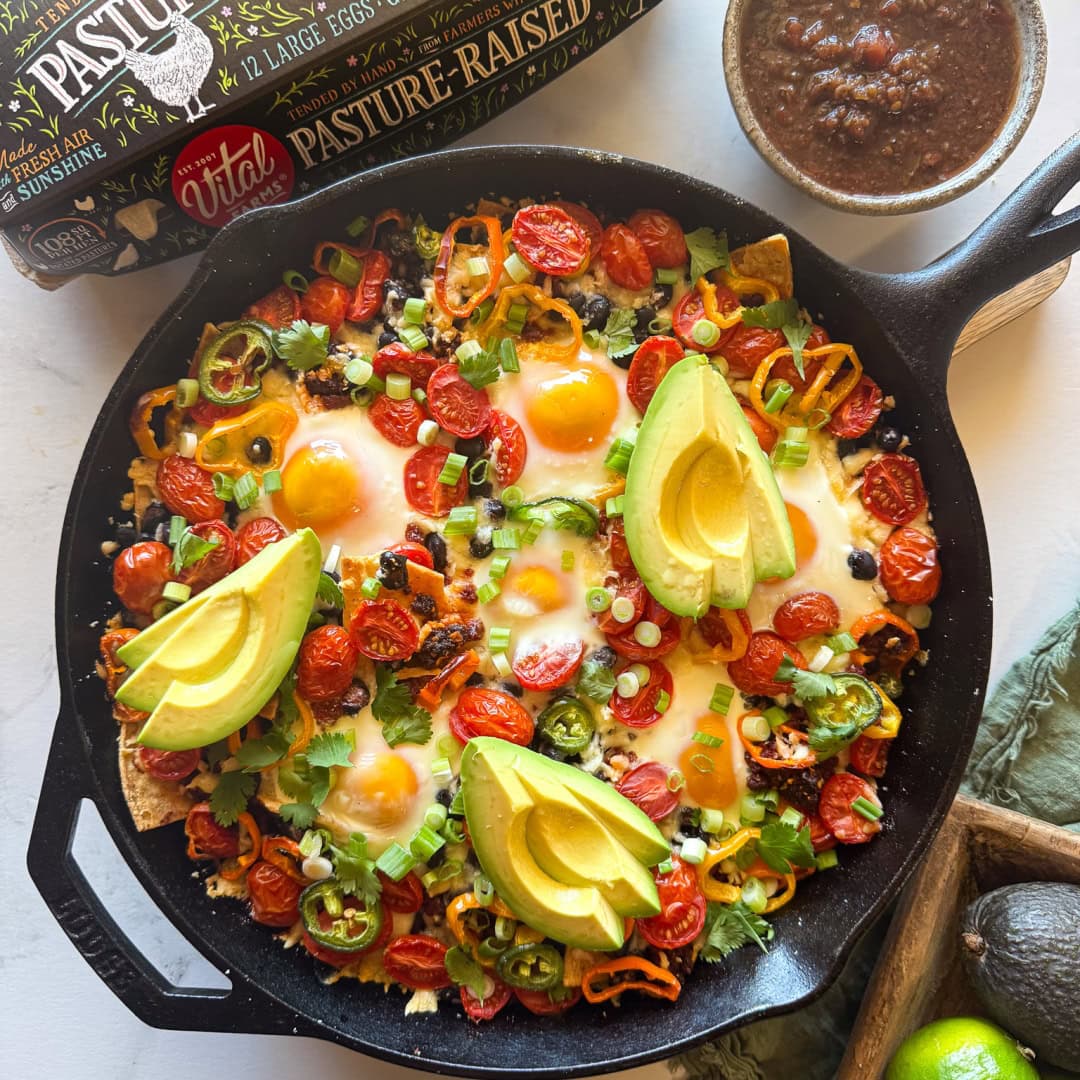 Who says you can’t have nachos for breakfast? Packed with hearty flavors like chorizo, black beans, cheddar and jalapeños then topped off with eggs, these make the perfect shareable snack for a game day or weekend brunch.