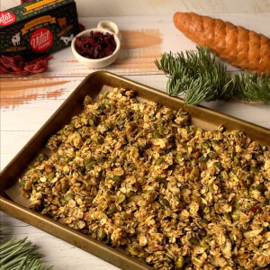 - Spread the mixture evenly onto the trays, and press down gently to make clusters. Bake for 15 minutes, then rotate the trays and gently stir to prevent any burning. Return the trays to the oven for another 15-20 minutes, or until golden brown.