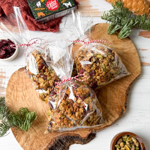 This homemade granola is low effort with maximum buttery, toasty flavor making it the perfect sweet lil gift this holiday season. Make a batch, bag it up and share the love or keep it for yourself as a festive snack.