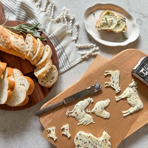 Turn your butter into a work of art with cow & chicken butter molds. Spread creamy cranberry and sage-infused butter into silicone molds for an artful addition to your dining table.