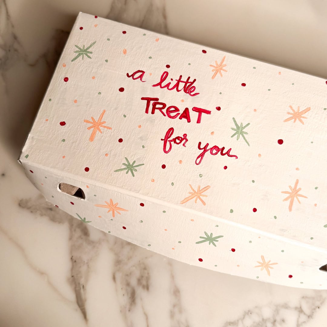 • Paint desired design on the top portion of the carton. Allow to fully dry then load up with your baked creations!